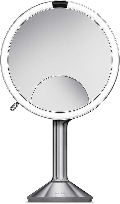 simplehuman ST3024 20cm Sensor Mirror Trio with Touch-Control Brightness, Light Up Makeup Magnifying Mirror, 10x, 5x, 1x Magnification, LED, Dual Light Setting, Rechargeable, Brushed Stainless Steel