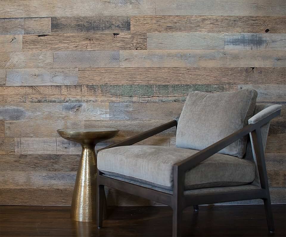 Reclaimed Wood Wall Planks by Urban Evolutions Grey and Brown Wire Brushed Equestrian Oak Wall Boards 3/8" Thick, 4.75" Wide, Up To 5' Long, 20 Square Feet Per Box Contractor Quality or DIY