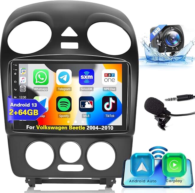 Hi-Fi 2+64G CarPlay Radio Android Screen for VW Volkswagen Beetle 2004-2010 Car Stereo, 9'' HD Touch Screen Android Auto, AHD Backup Camera, Mirror Link, GPS, WiFi