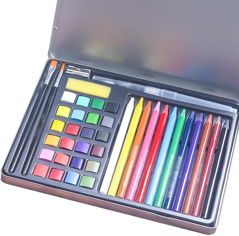 CSCDD 24 Solid Watercolor Pigment Set, Wood Free Water-Soluble Color Pencils, 42 Pieces Watercolor Painting Set