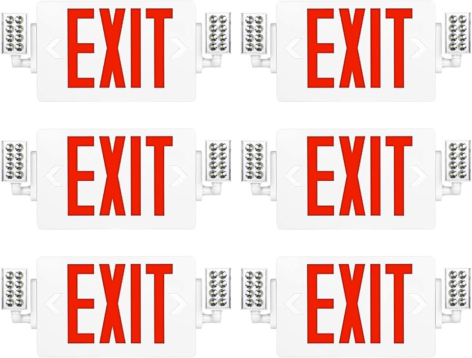 SPCETSUN 6 Packs Red Exit Sign with Emergency Lights-LED Emergency Exit Light with Battery Backup,UL Listed, AC 120/277V,Double Face Commercial Emergency Exit Light Combo for Business.
