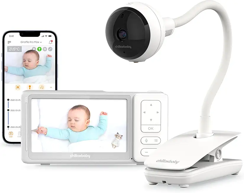 CHILLAX Giraffe Pro Max Baby Monitor – Video Baby Monitor with Full HD 1080p Camera and 5” 720P Video Parent Unit, Privacy Protection Switch, Auto Dimming LED, Gooseneck, 2-Way Audio, Night Vision