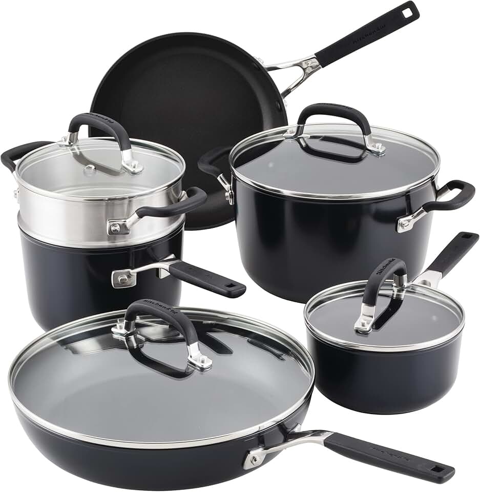 KitchenAid Hard Anodized Nonstick Cookware/Pots and Pans Set, 10 Piece, Matte Black