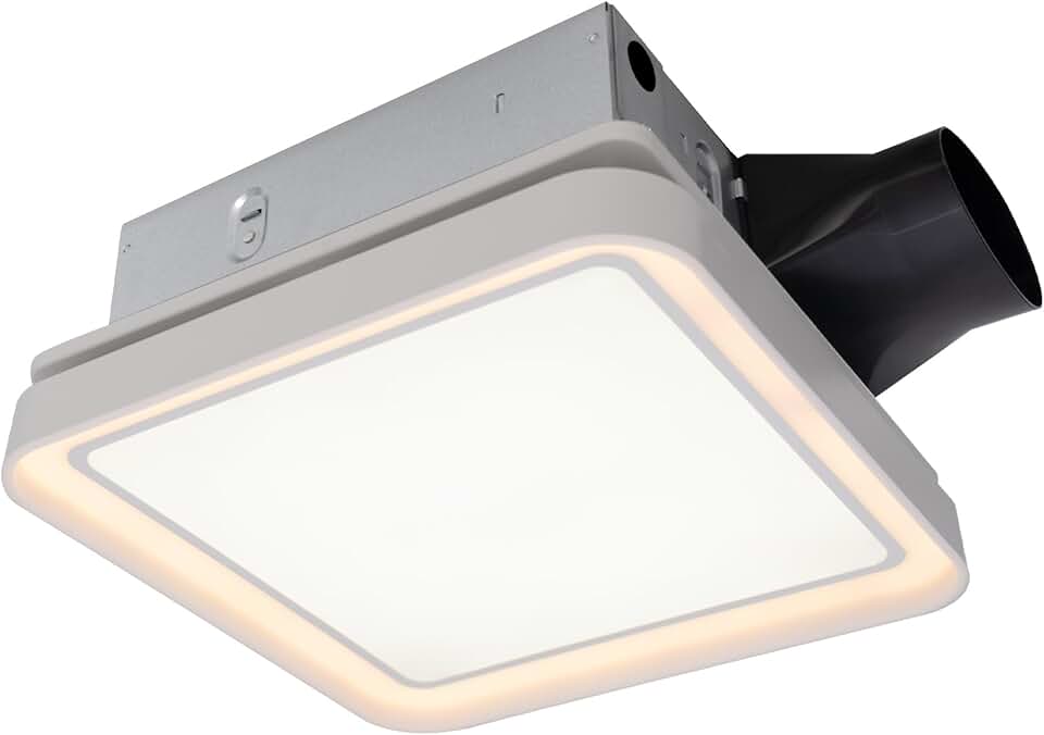 Akicon Bathroom Exhaust Fan with Light, 50-80-100 CFM DC Motor, 1.2 Sones Bathroom Vent Fan, 3CCT LED Light 2700K/4000K/5500K with 7W Night Light Quiet Energy Saving Bathroom Ceiling Fan, White