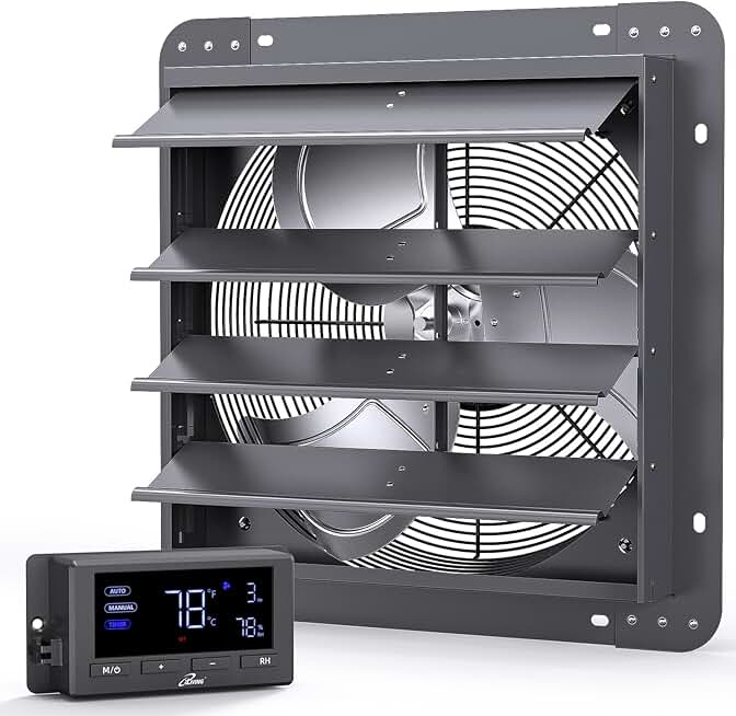 iLiving 16" Wall Mounted Shutter Exhaust Fan, Automatic Shutter, Temperature and Humidity Controls with Variable Speed, 1736 CFM at 1600 RPM DC Motor