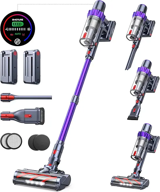 Cordless Vacuum Cleaner, 2 Batteries 110 Mins Runtime Vacuum Cleaners for Home, 40KPA 450W Stick Vacuum with Brushless Motor, Automatically Adjust Suction, Handheld Vacuum for Pet Hair/Carpet/Floor