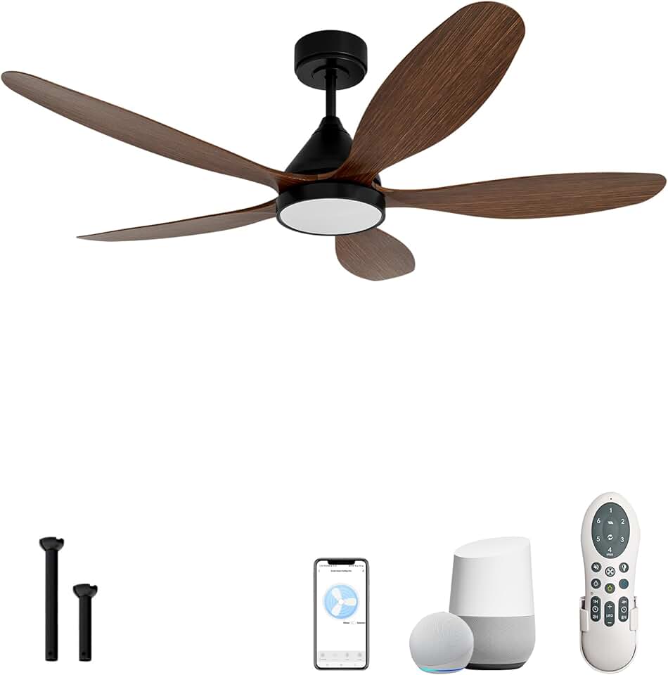 52 Inch Smart Ceiling Fans with Light, Reversible 5-Blade Ceiling Fan with Alexa,App Controls and Remote, High CFM 8811, Quiet DC Motor 6 Speed, Timing, Dimmable LED Light, Walnut