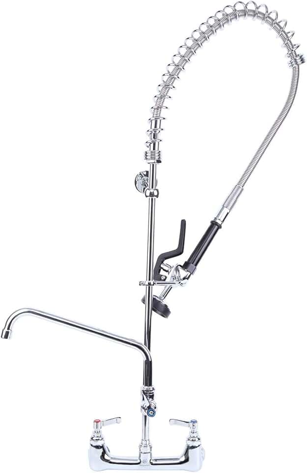 Commercial Kitchen Faucet Wall Mount with Pre-Rinse Sprayer 8 Inch Center Wall Mount for Kitchen Sink Faucet with 360° Swivel Spout 41" Height Faucet with Pull Down Spray Chrome