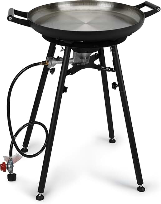 Onlyfire UPGRADED Paella Burner and Stand Set with 21 Inch Frying Pan and Reinforced Legs, GS300 Outdoor Cooking System Portable Propane Cooker with Wok for Backyard Camping RV, 4FT Hose