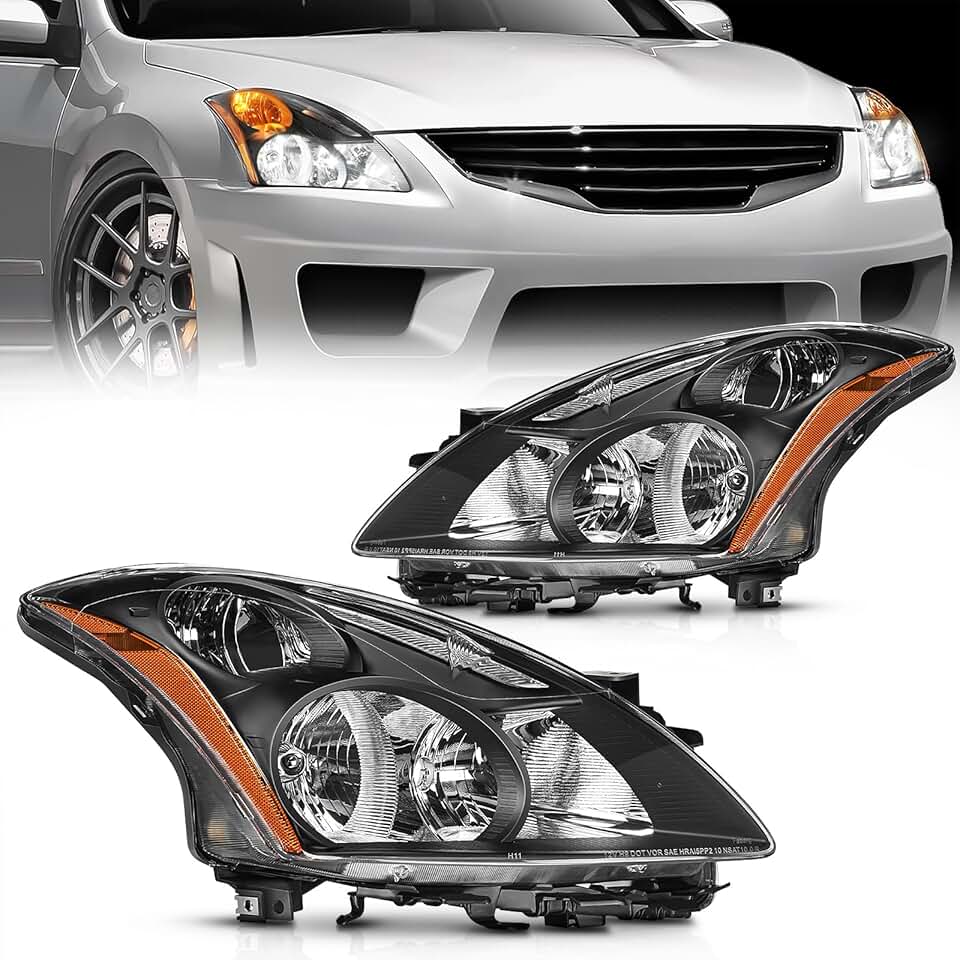 Nilight Headlight Assembly Compatible with 2010 2011 2012 Nissan Altima 4 Door Sedan Replacement Headlamp Black Housing Amber Reflector Driver and Passenger Side
