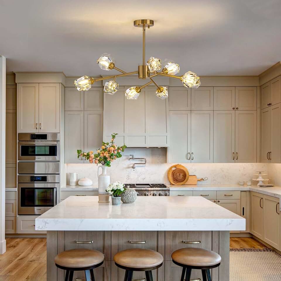 Sputnik Crystal Chandeliers for Dining Room, Brass Modern Chandelier, 9-Light Gold Chandelier Light Fixture for Living Room, Bedroom, Kitcken, Globe Flush Ceiling Light L31.5 x W31.5