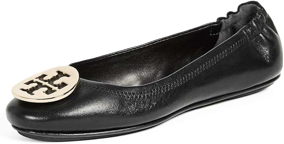 Tory Burch Minnie Leather Travel Ballet Flat (6, Perfect Black / Gold)