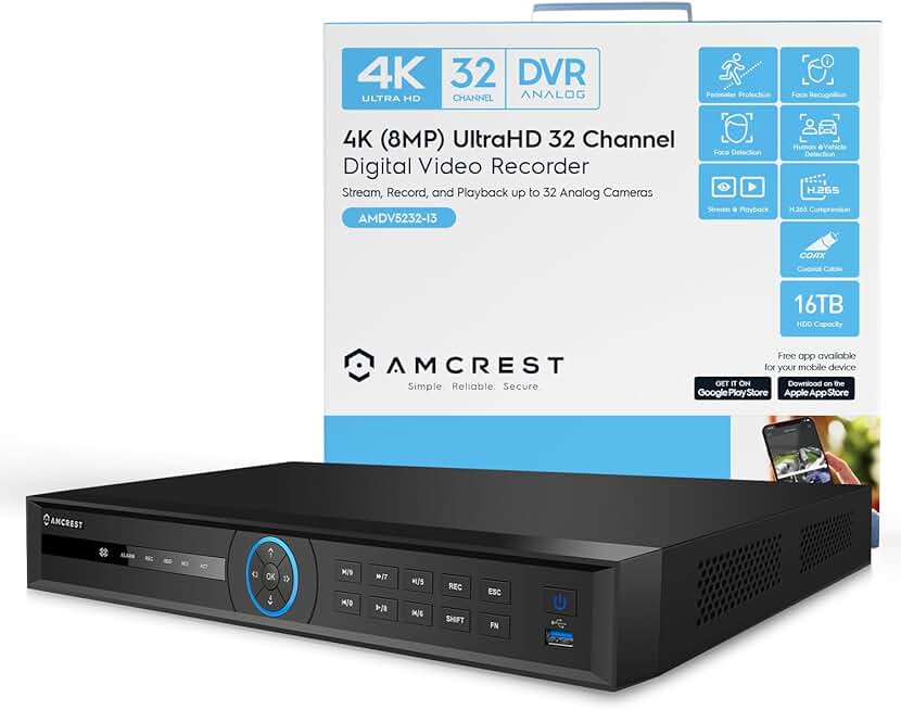 Amcrest 4K UltraHD 32 Channel AI DVR Security Camera System Recorder, 8MP Security DVR for Analog Security Cameras & Amcrest IP Cameras, AI Smart DVR, HDD & Cameras NOT Included (AMDV5232-I3)