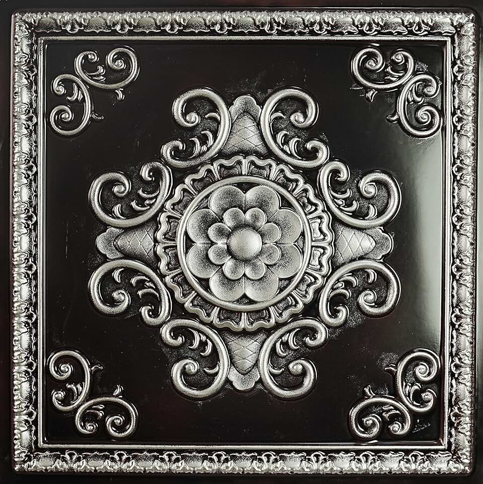 PVC Tin Ceiling Panel Embossed Interior Decorative Board Ancient Suspended Ceiling Tiles for Cafe Club Salon Hotel Store Bar 2'x2' PL08 Traditional Silver 10pcs/lot