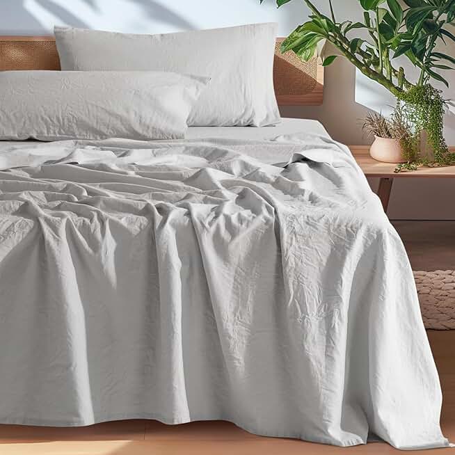 SONORO KATE 100% French Pure Linen Sheets, Breathable and Durable Line King Size Sheets, Anti-Tear Line Bed Sheets, Machine Washable, 16 Inch Deep Pocket - 4 Piece (Grey, King)