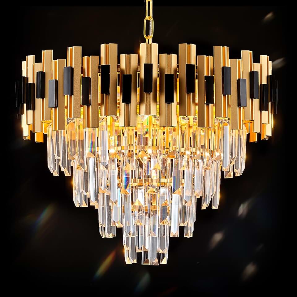 Modern Crystal Chandeliers,Black and Gold Large 20” Round Chandelier for Dining Room,Luxury Ceiling Pendant Light Fixture 4 Tiers K9 Crystals for Living Room Bedroom Foyer