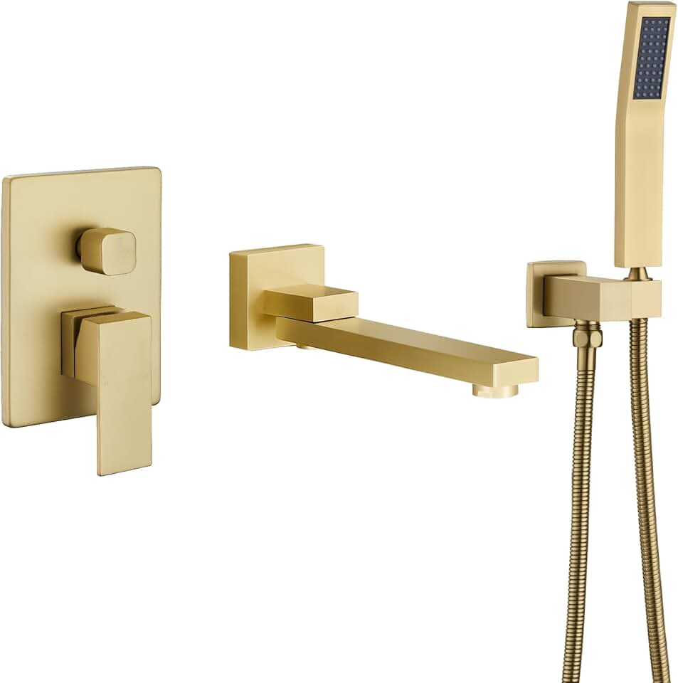 DASAN Swiveling Wall Mount Tub Filler Faucet Set with Hand Held Shower, Brushed Gold Modern Creative Bathtub Faucet Wall Mounted Bath Tub Faucet with High Flow Rough in Valve, SA-TF05WH-BG
