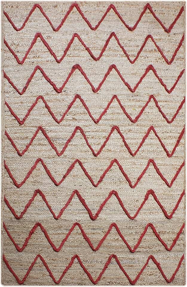Natural Fiber Collection Runner Area Rug - 5' x 10', Beige & Red Geometric Braided Jute Rug 0.27-inch Thick, Ideal for High Traffic Areas in Hallway & Stair, Outdoor Yoga Mat, Bedroom