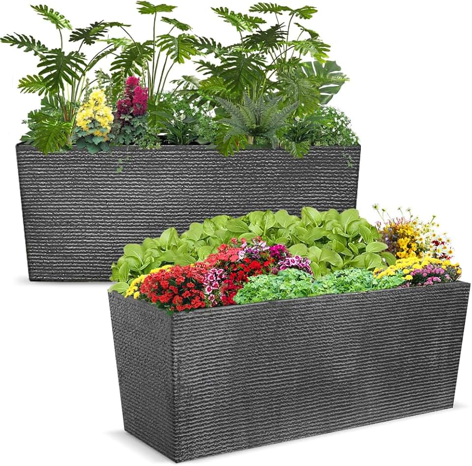 2 Pcs Pack Heavy Duty Plastic Resin Long Box Planter Pots Large Rectangular Planter Flower Pot with Drainage Holes for Indoor Outdoor Deck Porch Garden Home Patio Front Door (Black, M)