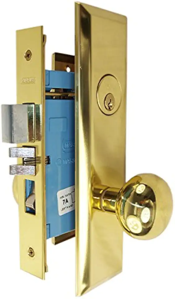 Marks New Yorker 7NY10A/3, Polished Brass Right Hand Mortise Entry Lock Set, Screwless Knobs Thru-Bolted Lockset (Right-Handed)
