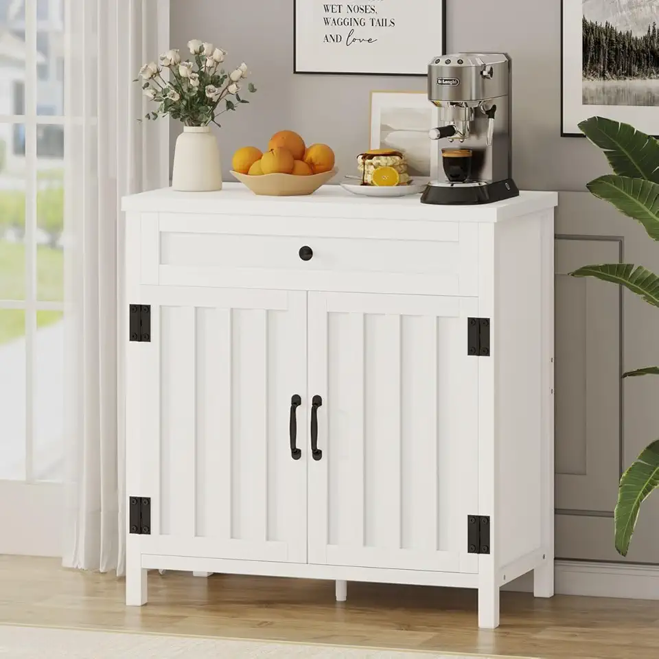 FATORRI Kitchen Storage Cabinet, Sideboard Buffet Cabinet with Storage, Farmhouse Bar Cabinet with Drawer and Adjustable Shelf, Modern Coffee Bar Cabinet for Living Room (White Oak)