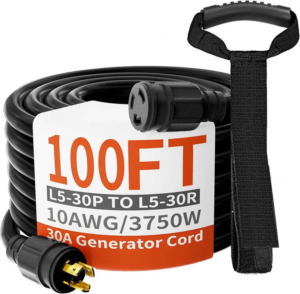 huanchain 3 Prong 30 Amp Generator Cord 100 Feet Heavy Duty,NEMA L5-30P/L5-30R 10 Gauge 125V SJTW Black Lock Generator Extension Cord Waterproof, ETL Listed
