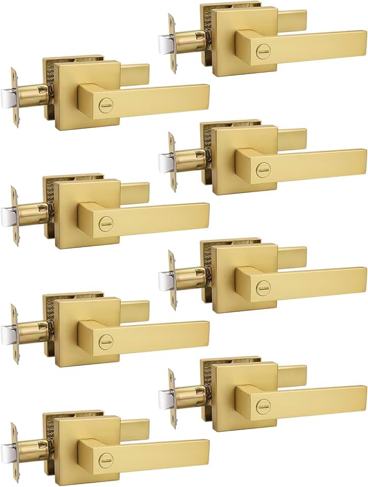 8 Pack Gold Door Handles, Privacy Door Lever Set for Bedroom and Bathroom, Left or Right Handed, Matte Black Finish, 1.72 lb per Lever