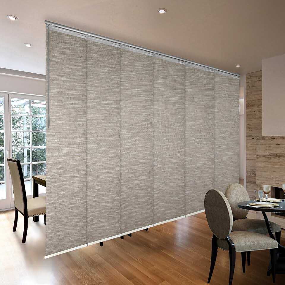 Oat Brown 6-Panel Single Rail Panel Track Extendable 70"-130" W x 116" H, Panel Width 23.5"