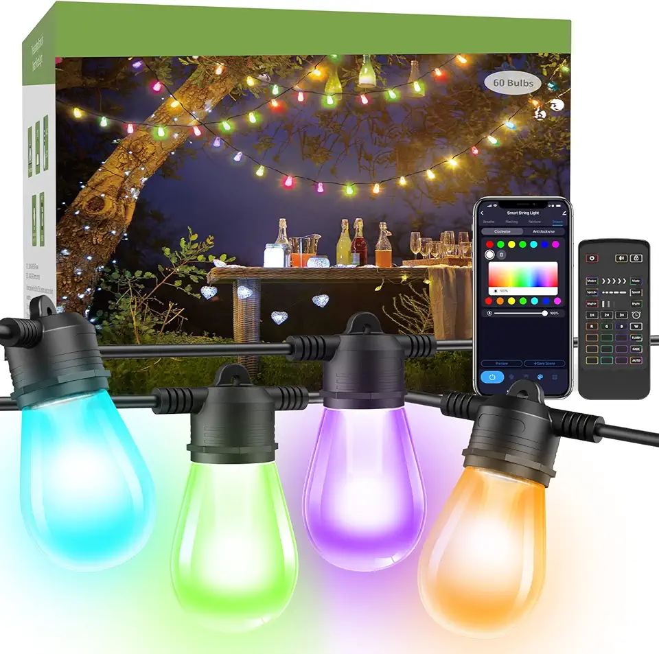NOVOSTELLA Outdoor String Lights, 179ft (89.5X2) RainbowColor Smart Patio Light Outside IP65 Waterproof, 60 LED RGBCW Dimmable RGB IC Bulbs Compatible with Alexa for Decoration, Party, Backyard