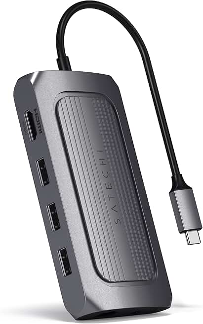 Satechi USB4 Multiport Adapter, USB C Hub with 8K HDMI, 100W USB C PD Charging, 3 USB-A, Ethernet, Micro/SD Card Readers, Audio Jack, for MacBook Pro/Air M1 M2 M3, Windows
