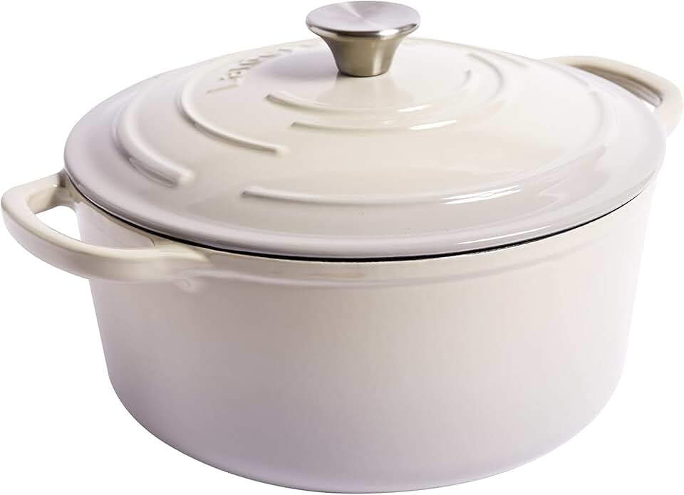 Larder & Vine Enameled Cast Iron Dutch Oven with Lid - Oversized Handles, Dome Lid, Dutch Oven for Sourdough Bread Making – 5.7QT/5.4L - (Stone)