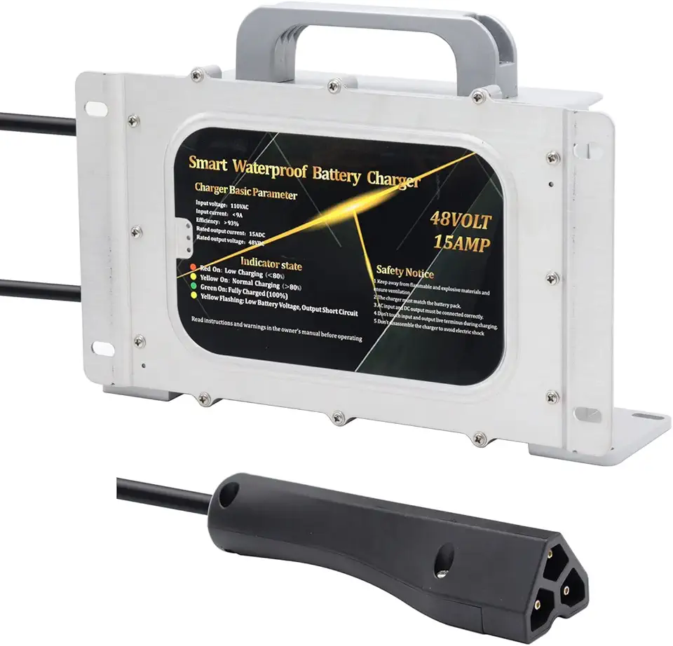 48 Volt 15 AMP Waterproof Golf Cart Battery Charger for 48 Volt Ez-Go EZgo RXV/TXT with RXV Plug 3 Prong Connector Waterproof IP68