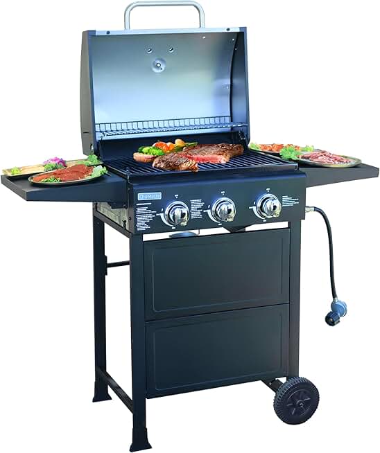 Grill. 3 burner gas grill, Propane Grill, bbq grill with thermometer, gas grill outdoor for small gatherings, 30000 BTU barbecue grill with Foldable Rack.