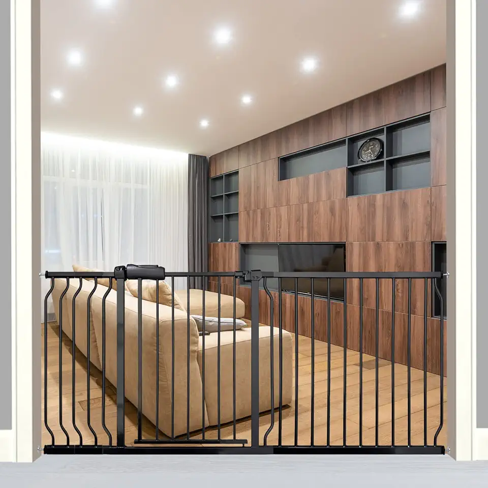 Extra Wide Baby Gate 67"-71.6" Tension Indoor Safety Gates Black Metal Large Pressure Mounted Pet Gate Walk Through Long Safety Dog Gate for The House Doorways Stairs