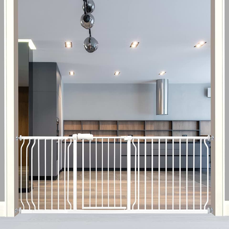 Extra Wide Baby Gate 76.4"-81.1" Large Walk Through Safety Child Gates for Kid or Pet White Metal Pressure Mounted Pet Gate Long Safety Dog Gate for The House Doorways Stairs