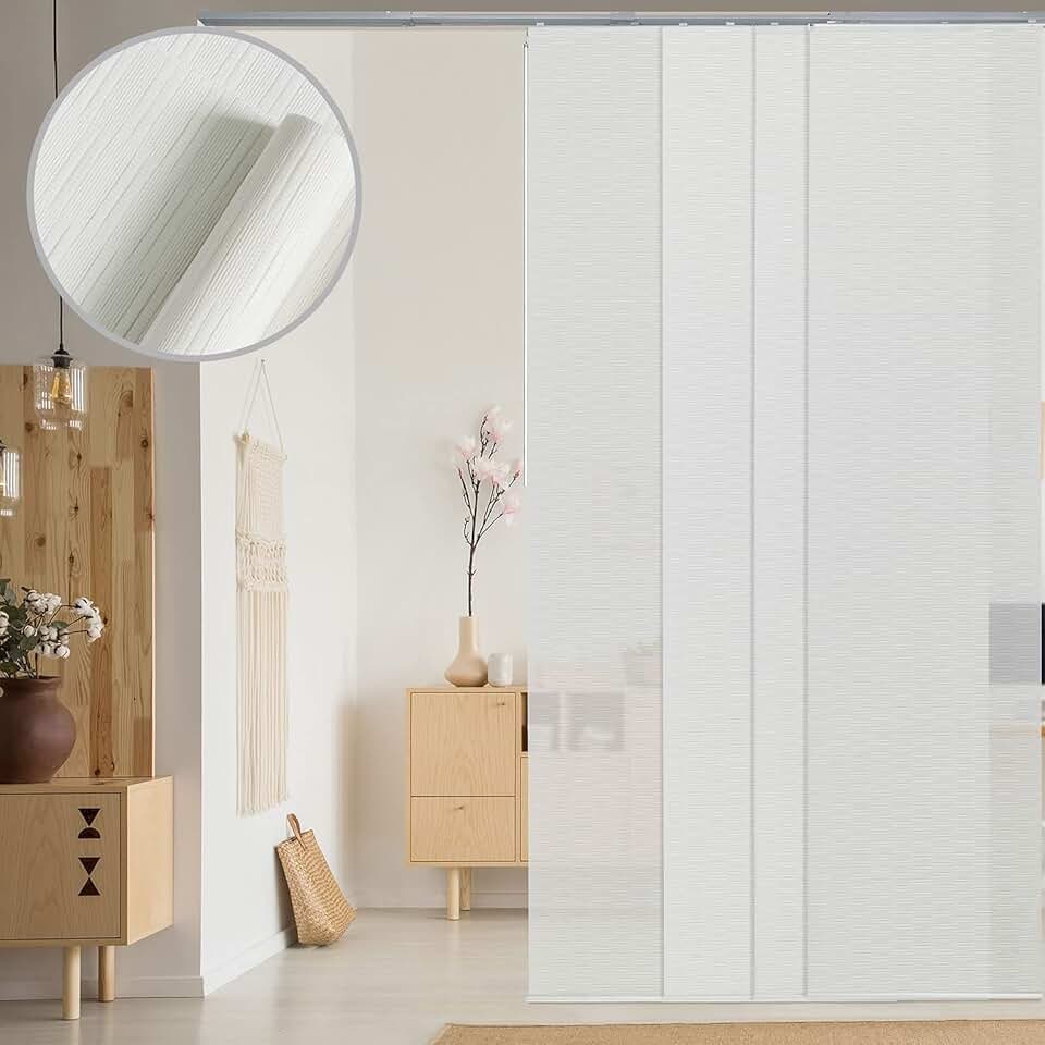 GoDear Design Adjustable Sliding Room Dividers Panel Blinds 45.8"- 86" W x 96" H, Extendable Track Vertical Blinds for Windows Patio Doors, Trimmable Vertical Panel Curtains, Semi Privacy, Snowdrop