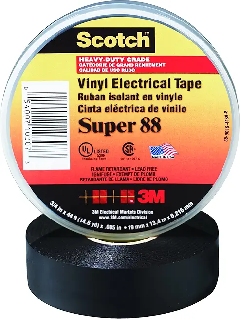 Ship Now Supply Super 88 Electrical Tape, 1 1/2' x 44', Black, 10/Case, 3M Stock# 7000058433