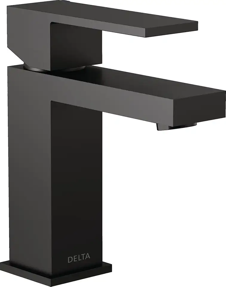 Delta Faucet Modern Single Hole Bathroom Faucet, Black Single Handle Bathroom Faucet, Bathroom Sink Faucet, 1.0 GPM, Drain Assembly, Matte Black 567LF-BLGPM-PP
