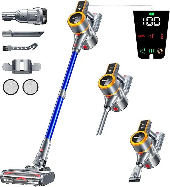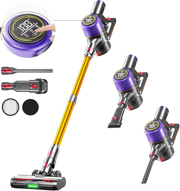 Cordless Vacuum Cleaner, 45Kpa/550W Vacuum Cleaners for Home with Touch Display,Up to 50 Mins Runtime,1.5L Dust Cup, Anti-Tangle Brush,Lightweight Cordless Stick Vacuum for Hard Floor,Carpet,Pet Hair