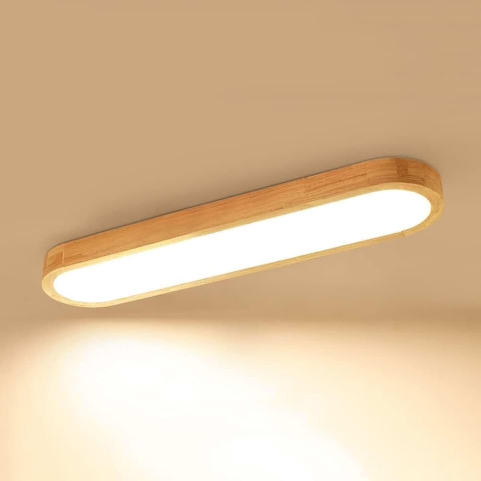 Modern Linear LED Flush Mount Ceiling Lighting Fixtures Rustic Farmhouse Wood Linear Ceiling Light for Hallway Bar Long Strip Dimmable Ceiling Light for Bathroom Kitchen Entryway Porch