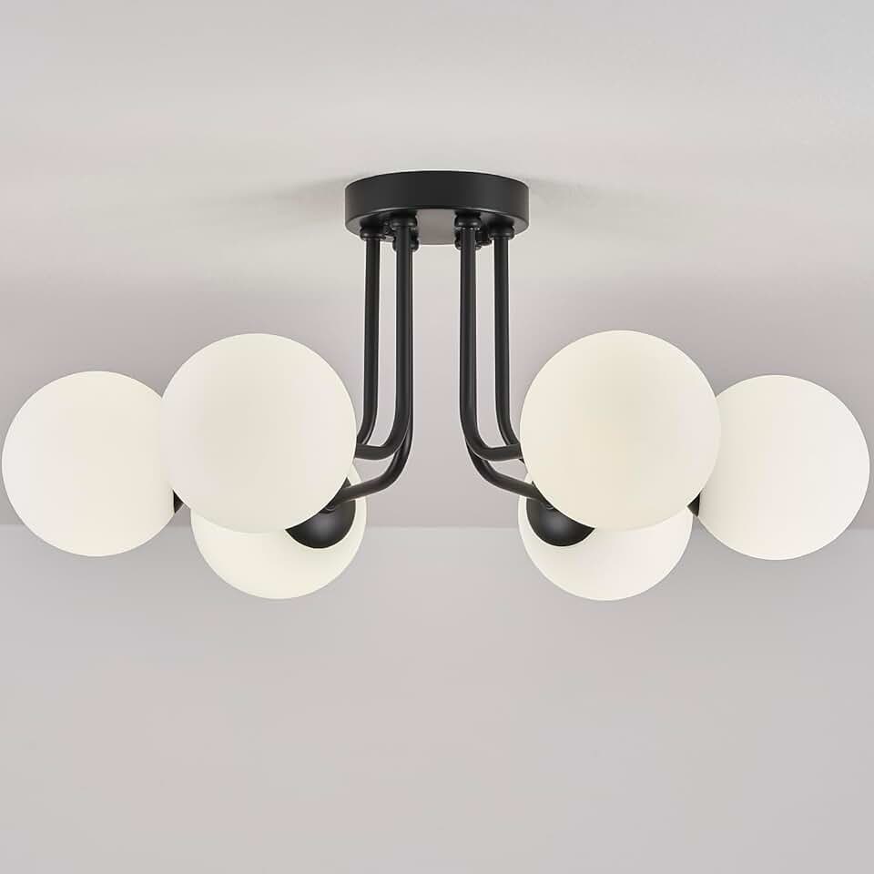 Modern Semi Flush Mount Ceiling Light,Black White Glass Shade Semi Ceiling Light 6-Light,Sputnik Chandeliers for Bedroom living room Hallway Dining Room Lighting Fixture
