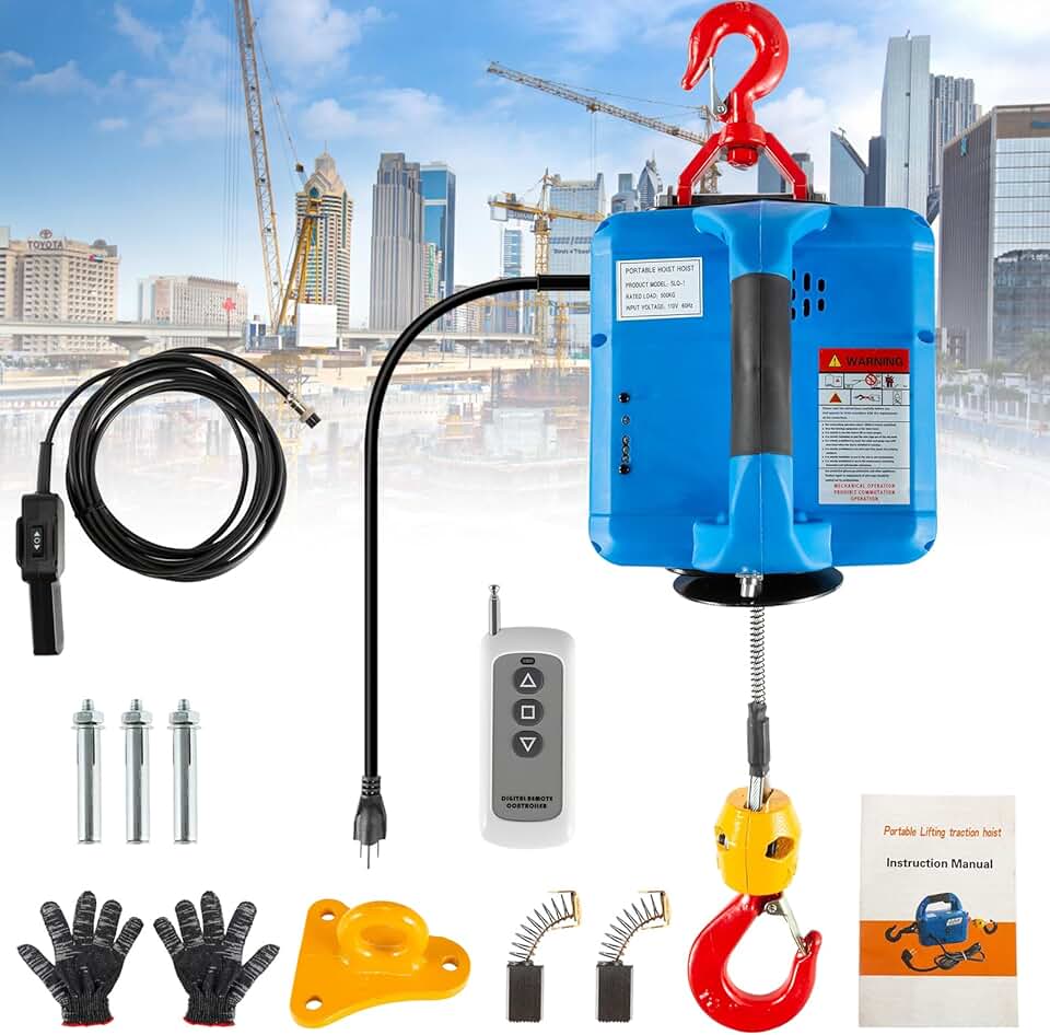 3 in 1 Electric Hoist with Remote Control, 110 Volt Electric Winch 1100lbs,1500W Electric Crane Hoist with Fixing Bracket Overload Protection for Lifting Towing 16ft/min,25ft Lifting Height