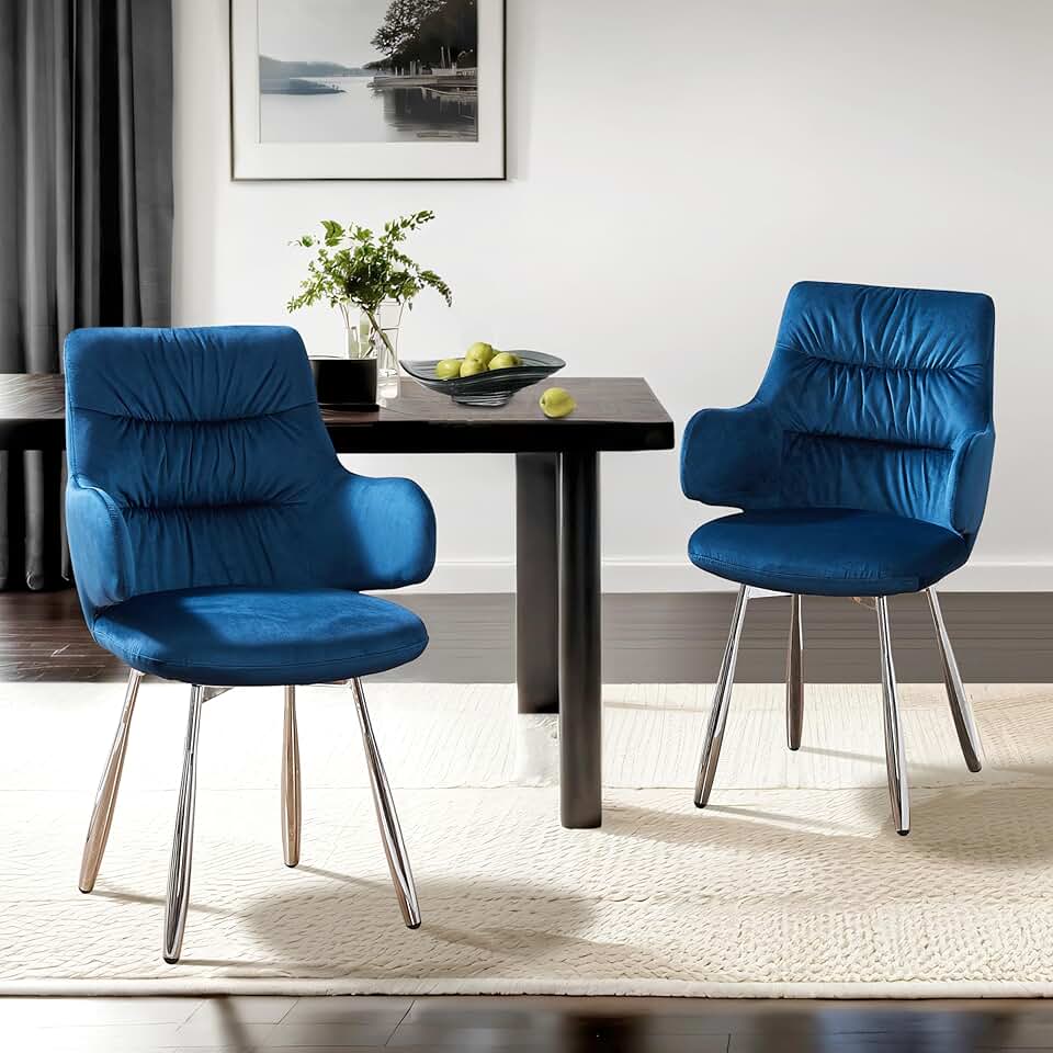 Art Leon Dining Chairs, Set of 2, Velvet Upholstered Dining Room Chairs, Modern Accent Armchairs with Chrome Plated Metal Legs for Kitchen Living Room, Blue