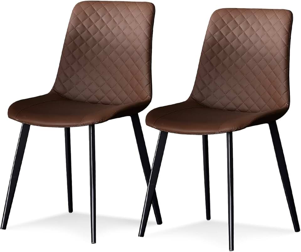 seonyou Brown Leather Dining Chairs Set of 2, Upholstered Leather Modern Kitchen Chair, Dining Room Chair with Metal Legs