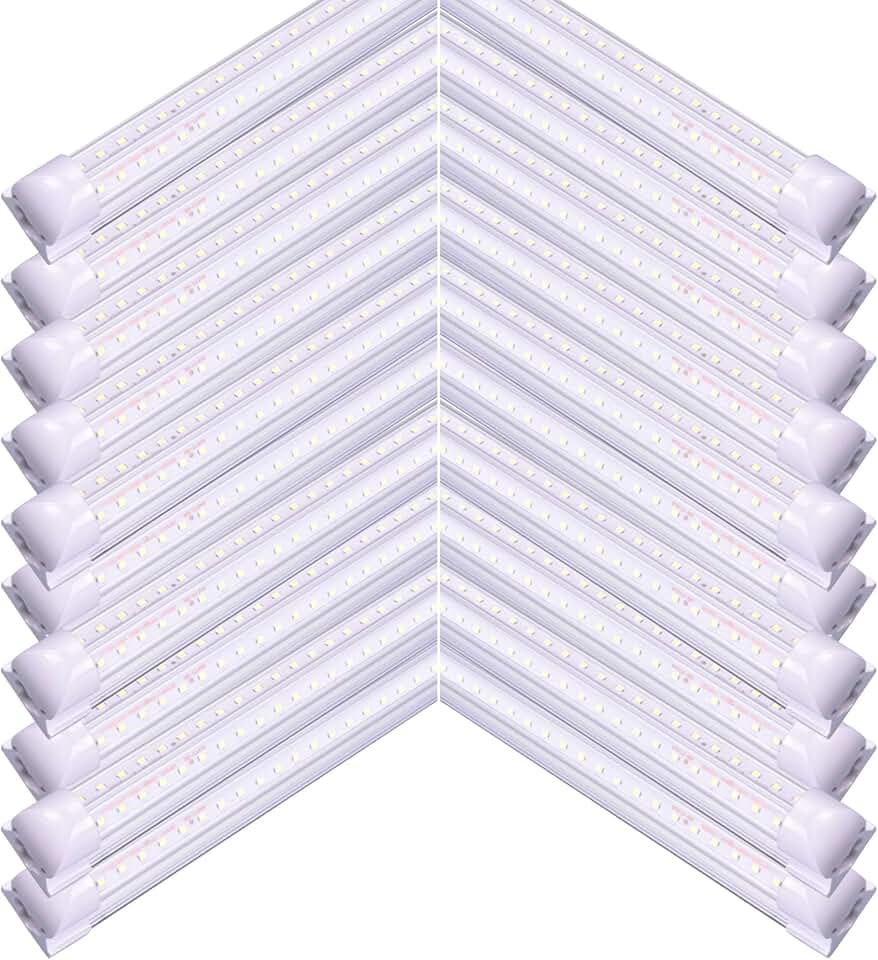 Linkable Shop Lights Clear Cover, 100W 8ft LED Tubes, 96 in T8 Integrated Fixture, V-Shaped 270 Degrees, 6000K, Plug and Play, Fluorescent Tube Replacement (20-Pack)