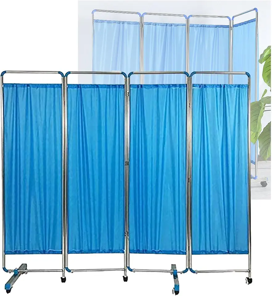 Rolling 4 Panel Medical Privacy Screen On Wheels, 6ft Tall Foldable Room Divider Clinic/Patient/Exam Room Temporary Fence, Space Saving
