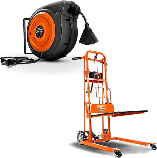 SuperHandy Material Lift Winch Stacker, Pallet Truck Dolly, Lift Table, Fork Lift, 330 Lbs & Extension Cord Reel Retractable 16AWG x 50' Feet Long [Bundle Deal]