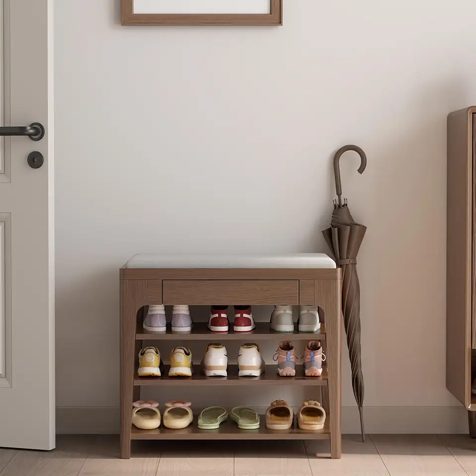 Small Shoe Bench with Storage, Wooden Shoe Storage Bench with Cushion&Hidden Drawer, 3-Tier Shoe Rack Bench for Entryway, Mudroom, Hallway