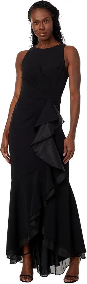 Adrianna Papell Women's Ruffle Crepe Halter Gown