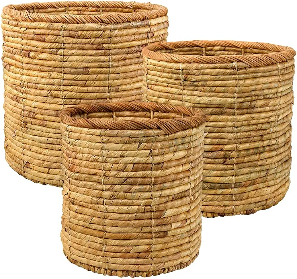 Serene Spaces Living Set of 3 Eco-Friendly Water Hyacinth Basket Pot: Stylish Plant Holder for Home and Garden, Indoor Plants, Flowers, Home, Office Decor, Gift-Giving, In Small, Medium & Large size